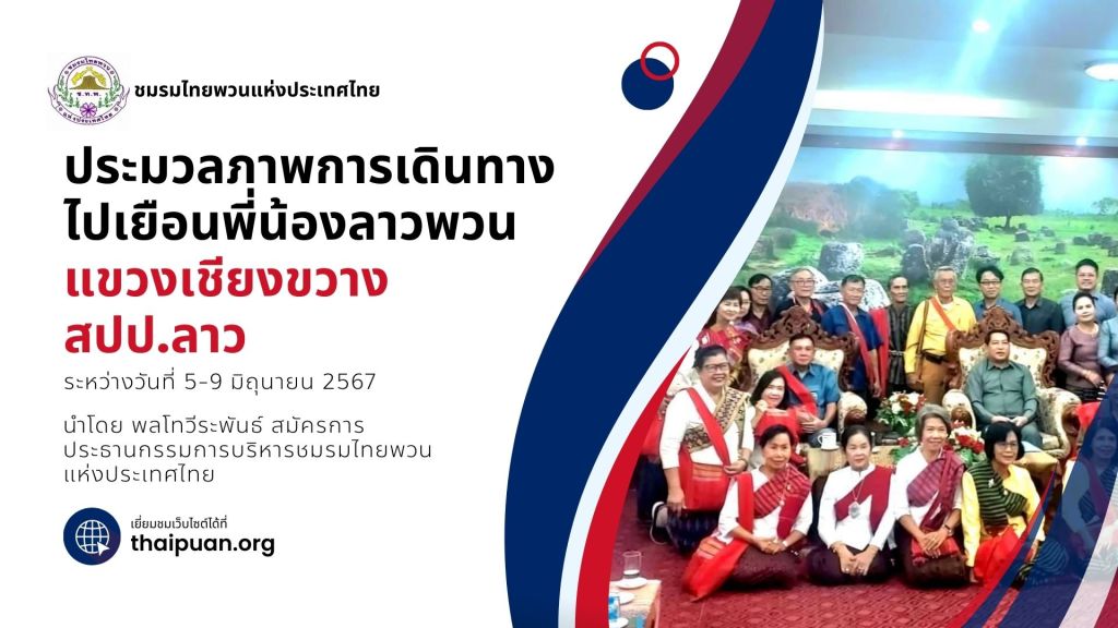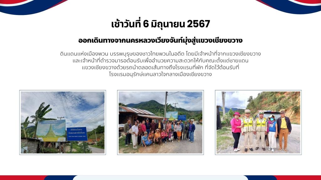 การเดินทางไปเยือนพี่น้องลาวพวนแขวงเชียงขวาง สปป.ลาวของชมรมไทยพวนแห่งประเทศไทยระหว่างวันที่ 5-9 มิถุนายน 2567 นำโดยพลโทวีระพันธ์ สมัครการ ประธานกรรมการบริหารชมรมไทยพวนแห่งประเทศไทย
